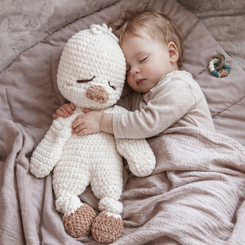Stai cercando un compagno unico e coccoloso per il sonno del tuo bambino? Non cercare oltre: questo adorabile giocattolo all’uncinetto è proprio ciò che fa per te! Perfetto per le coccole durante la nanna e per i momenti di gioco durante il giorno, è un regalo ideale per ogni neonato o bambino, di qualsiasi età.
