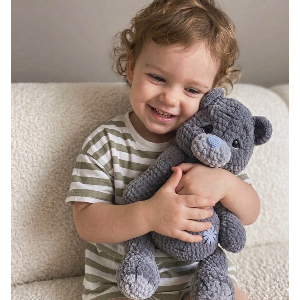 • The Plushie Soft Toy can enrich tactile sensations since it combines different textured yarns, which will be interesting for the child and help them learn about the surrounding world.