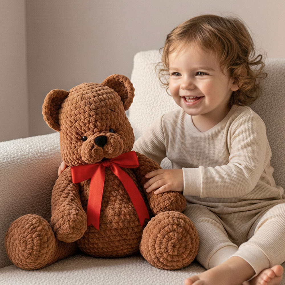 • The Plushie Soft Toy can enrich tactile sensations since it combines different textured yarns, which will be interesting for the child and help them learn about the surrounding world.