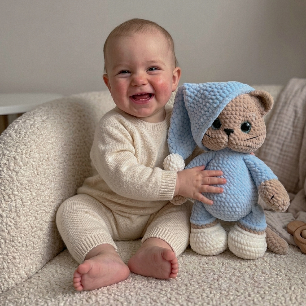 Are you searching for a unique and cozy sleeping friend for your little one? You don’t have to look any further as this cute crocheted toy is just the thing! It’s perfect for snuggles during bedtime and fun playtime during the day, making it an ideal present for any baby or child, regardless of age.