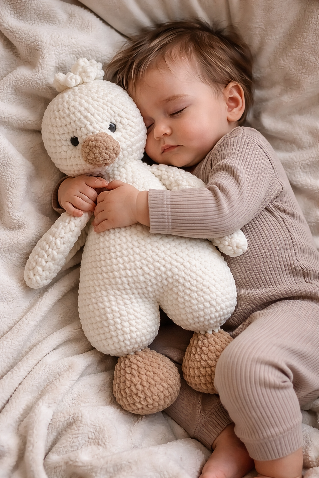 • The Plushie Soft Toy can enrich tactile sensations since it combines different textured yarns, which will be interesting for the child and help them learn about the surrounding world.